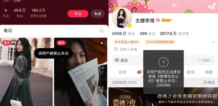 李湘多个社交账号遭全线禁言后,微博明确标示“违反法律法规或社区公约”,抖音与小红书客服则拒绝透露具体原因,令网民纷纷猜测,禁言背后或与长期高调炫富,或触及“清朗行动红线”有关,又或有企业税务合规或隐私侵权问题。