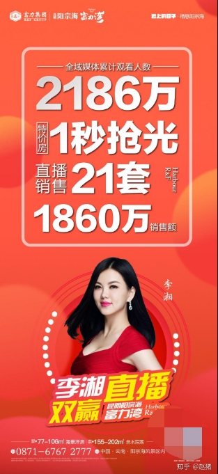 在2020年直播风潮刚刚席卷之时,李湘更大胆开启“直播卖房”,首场直播吸引700万观众,透过专业解说与现场连线,1秒售出21套住宅,创下1,860万元销售额。