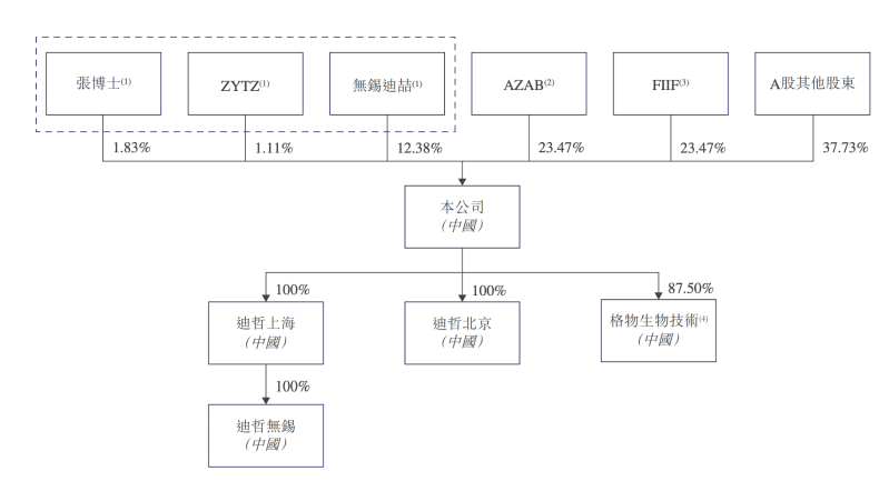 IPO前,无锡迪喆持股为12.38%,张小林持股1.83%,ZYTZ持股1.11%。无锡迪喆、ZYTZ均属与张小林相互一致行动的人士。张小林、无锡迪喆及ZYTZ有权共同行使公司已发行股份总数约15.33%所附带的表决权。