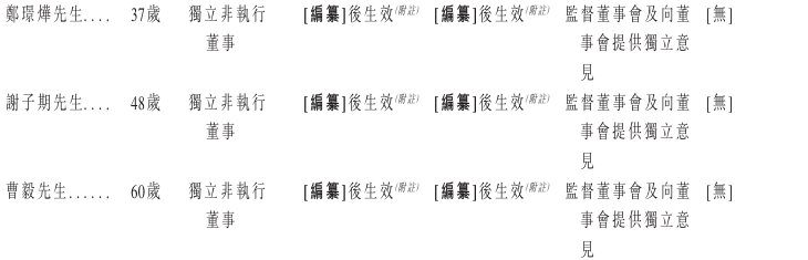 该公司的董事会由9名董事组成,包括4名执行董事、2名非执行董事及3名独立非执行董事。该公司的董事会负责并全权管理及开展业务。