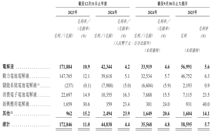 该公司已成为中国一家快速增长的电解液技术企业,市场份额近年来稳步增长。根据弗若斯特沙利文的资料,按出货量计,该公司于截至2025年9月30日止九个月在全球电解液供应商中排名第三。此外,该公司在固态电解质(SSE)、凝胶电解质、固液混合电解质及钠离子电解液等先进电池材料领域进行了战略布局。