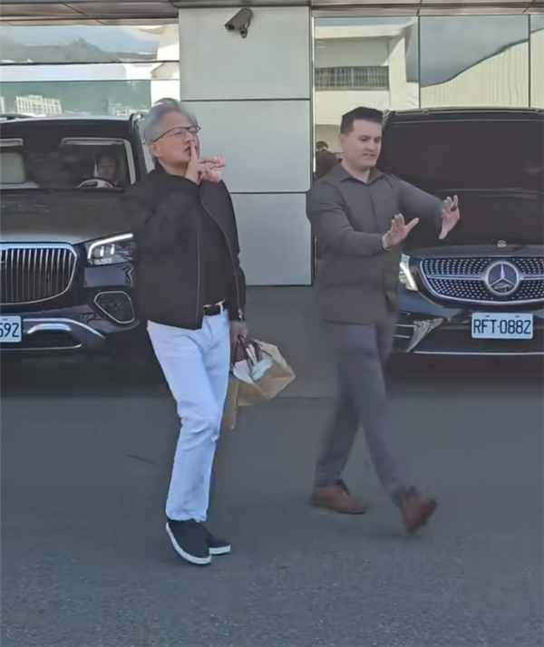 据悉,黄仁勋下午1时18分左右走出商务中心大门,身穿黑色夹克和白长裤,面带笑容发养乐多与三明治给现场守候的媒体,并为粉丝签名,还提醒粉丝“不能将签名球拿去卖”。