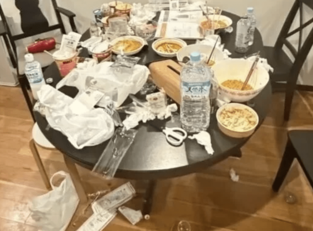 据日媒《中央日报》报道,涉事民宿员工于上周五(23日)在社交平台Threads发文,公开多张退房后拍摄的照片。画面所见,房内地板与桌面堆满外卖餐盒、未清理的即食面碗、用过的纸巾及毛巾,垃圾四散;房间及客厅同样凌乱不堪,厕所内更出现大量毛巾、厕纸及疑似用过的衣物,卫生状况令人咋舌。