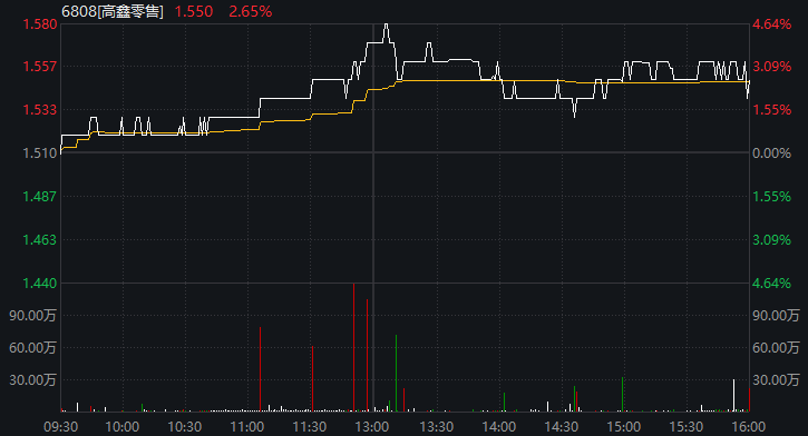 2月3日,高鑫零售上涨2.65%,报收1.55港元/股。