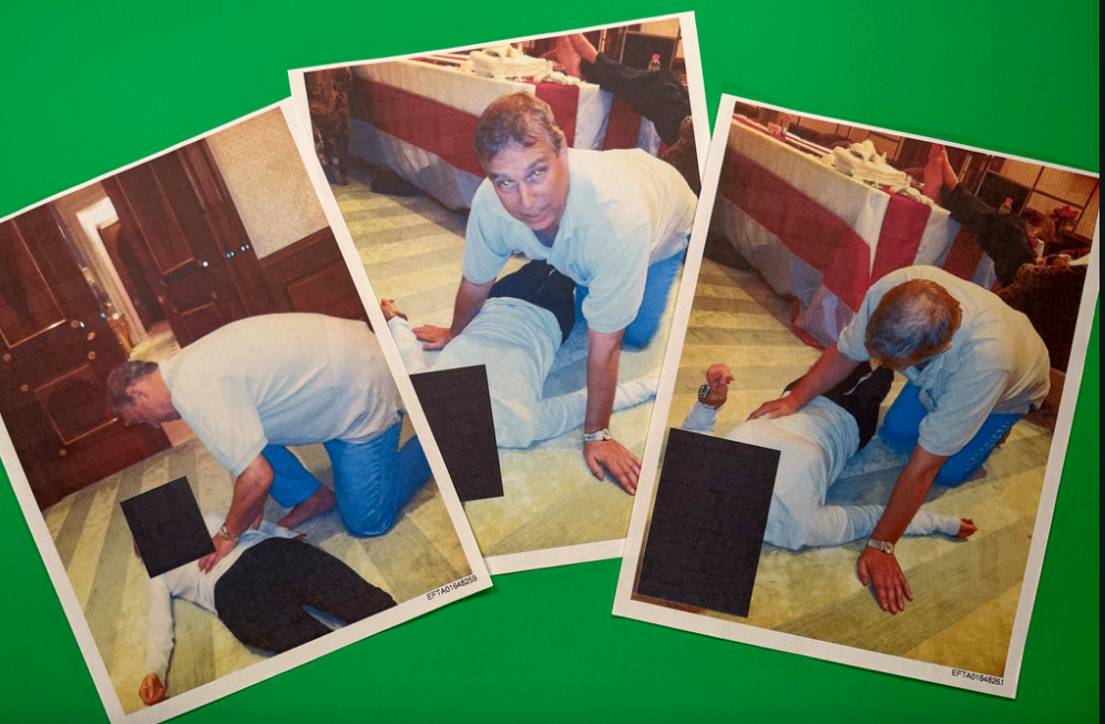 安德鲁的名字在这批新文件中出现数百次。爱泼斯坦向安德鲁介绍一名26岁俄罗斯女子。照片上安德鲁跪在躺在地板的女子身上。