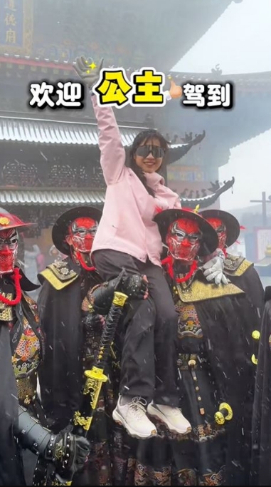 ▲洛阳老君山的锦衣卫陪爬服务,让“公主”轻松开心上山。小红书@老君山