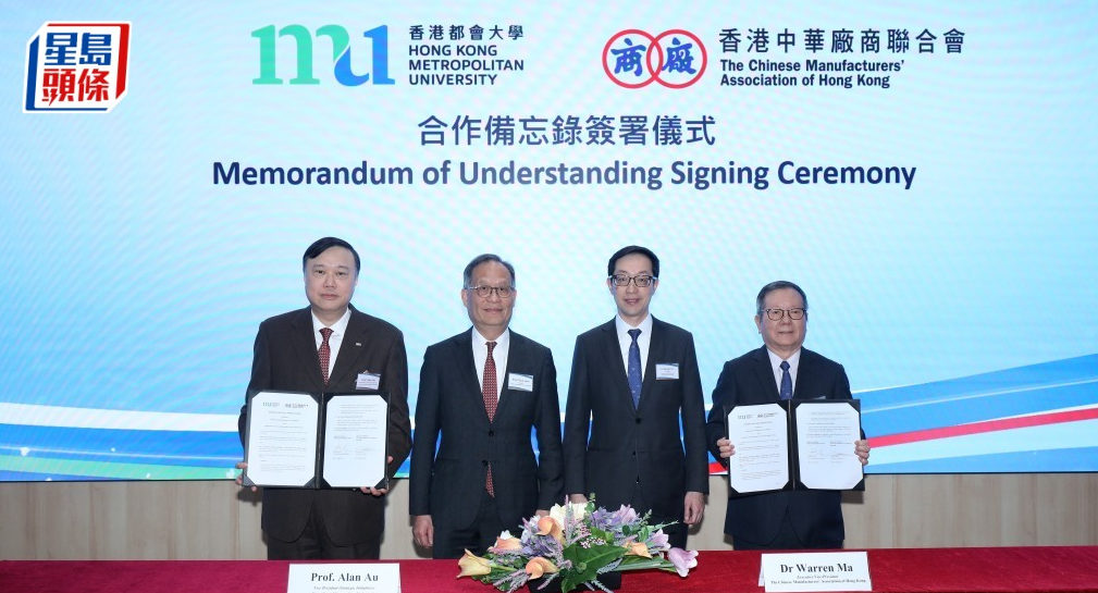 香港都会大学与香港中华厂商联合会昨日签署合作备忘录,建立学术与业界合作伙伴关系。根据备忘录,都大与厂商会将推动应用研究,并开展紧贴业界发展的实习计划及行业推广,携手促进产、教、研融合,发挥协同效应。