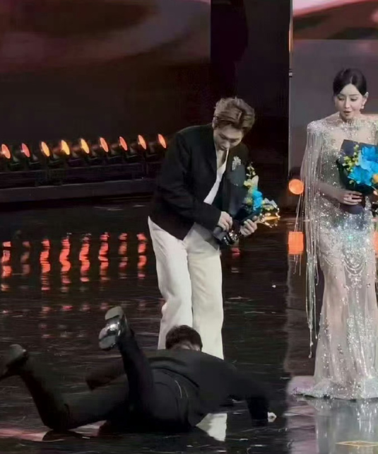 大麦演出总裁何弭登台为于文文、袁娅维、刘雨昕、汪苏泷等年度音乐人颁奖时意外失足摔倒,这一画面被镜头记录后迅速引爆网络。