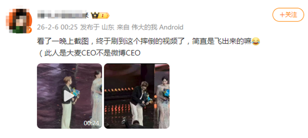 2月6日消息,在昨晚(2月5日)举行的2025年微博之夜颁奖典礼舞台上,颁奖过程中出现意外一幕。