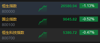 2月6日消息,港股三大指数集体下跌。截至午间收盘,恒生指数跌1.13%,报26580.94点,恒生科技指数跌0.47%,国企指数跌0.52%。盘面上,科网股跌多涨少,阿里巴巴、京东集团、网易跌超2%,美团、快手、哔哩哔哩跌超1%,小米集团涨超1%;锂电池板块逆势上涨,中创新港涨超3%;茶饮股普涨,古茗涨超4%;光伏太阳能股集体弱势,福耀玻璃跌超4%。