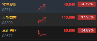 今日三只新股上市,集体上涨。其中,大族数控涨近18%;卓正医疗盘中一度涨超50%,现涨幅为34%;牧原股份涨超4%。