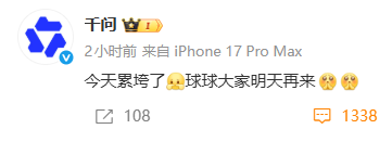 2月6日傍晚,千问在其官方微博发文:今天累垮了,球球大家明天再来。