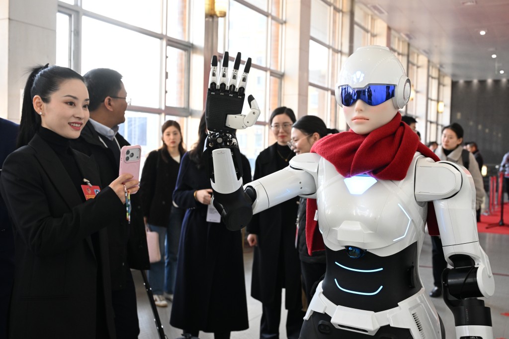 而在江苏南京两会专门设立AI产品体验区,电子智能服务机械人、无人机等多款科技产品亮相,直观呈现科技赋能政务服务的实践成果。