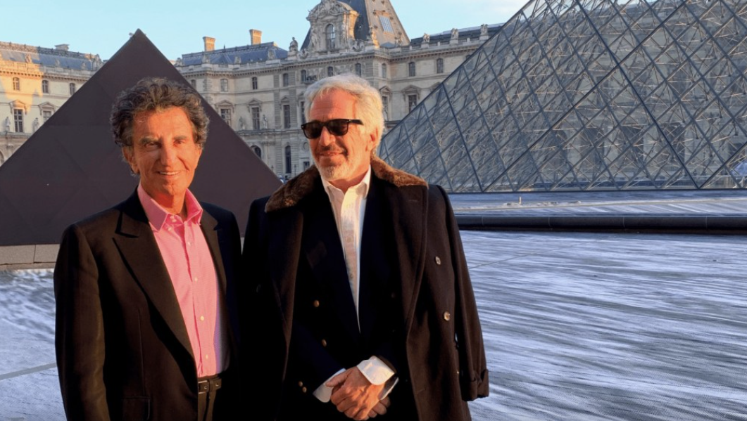 ▲美国司法部解密档案包含朗格(左)与爱泼斯坦在卢浮宫前合照。 美联社