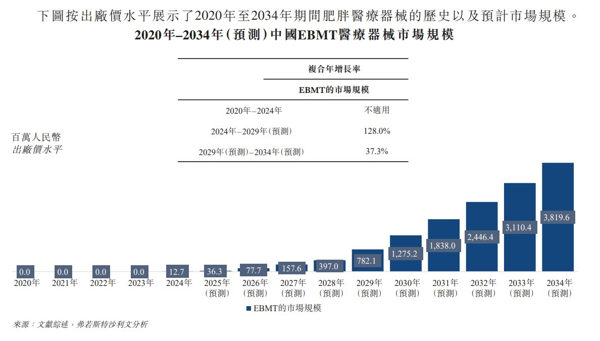 截至最后实际可行日期(即2026年2月2日),公司已成功开发并商业化推出一款EBMT治疗器械产品,并已获批注册两款旨在便利治疗器械操作的适配产品及一个用于全周期管理的数字健康管理平台。此外,公司正在扩大GBS用于较低BMI的获批适应证以涵盖较低体重指数,并在不同阶段独立开发其他多种在研产品,目标涵盖代谢性疾病的主流可行EBMT方案,公司借此开拓这片庞大却未被充分满足的市场。