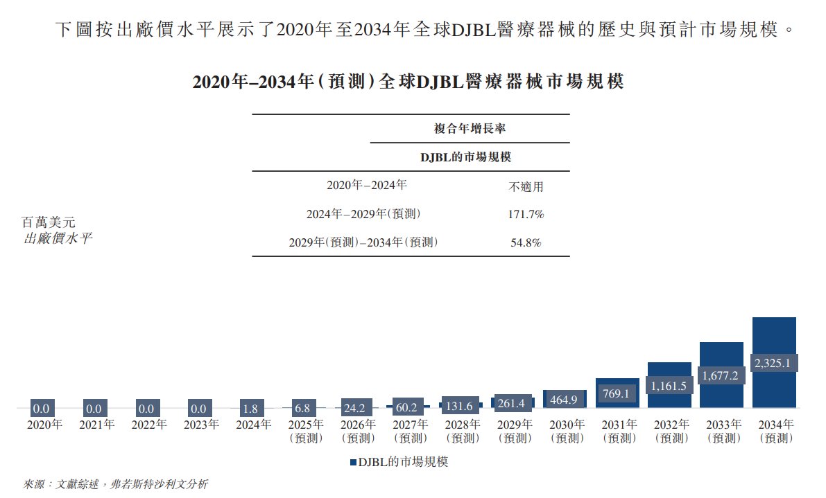 全球的DJBL医疗器械市场正处于早期但迅速扩张的阶段。以出厂价计算,市场规模从 2020年至2023年的近乎零增长至2024年的约1.8百万美元 — 这一年公司推出了核心产品GBS。在肥胖症与2型糖尿病患病率持续攀升、内镜代谢治疗临床接受度日益提高、主要市场监管审批逐步放开等因素的推动下,预计到2029年,DJBL市场规模将扩大至约261.4百万美元,在2024年至2029年间以171.7%的高复合年增长率增长。