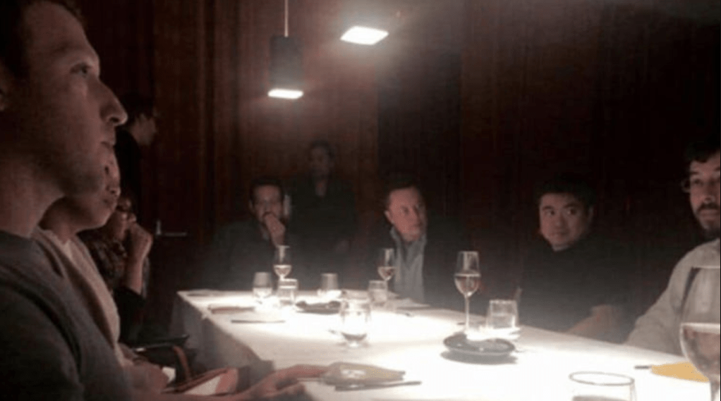 该次晚宴早于2019年已被《名利场》披露,据报由LinkedIn创办人Reid Hoffman在美国加州帕罗奥图主持。报道指,马斯克正是在该次聚会中,将爱泼斯坦介绍予扎克伯格。爱泼斯坦其后于2015年8月20日致函亿万富豪Tom Pritzker时,更形容该场晚宴“相当疯狂”。