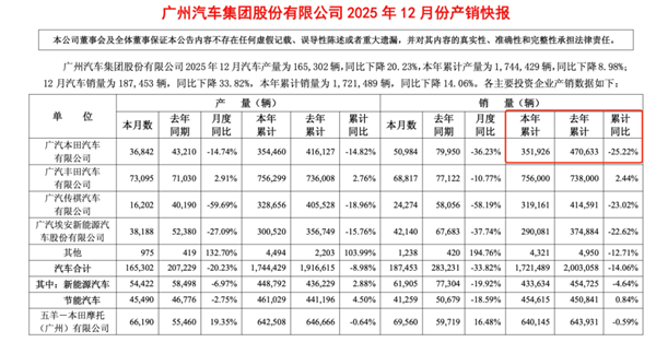 近日,广汽集团2025年业绩预告迎来“暴跌”,预计净利润最高亏损90亿元,其立下的230万辆销量目标也未能完成。