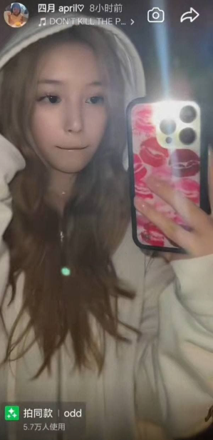 赵薇的女儿小四月今年便16岁,近日在其IG限时动态分享影片,见到小四月如妈妈赵薇拥有大眼睛,样子标致甜美,穿上杏色连帽卫衣的她,一头啡金色长发打扮新潮,拎起手机对镜自拍,又跟随音乐唱歌,甚有表演欲。