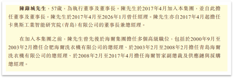 据《星岛》了解,陈录城现年57岁,现任卡奥斯执行董事及董事长,负责整体策略规划、营运及发展。