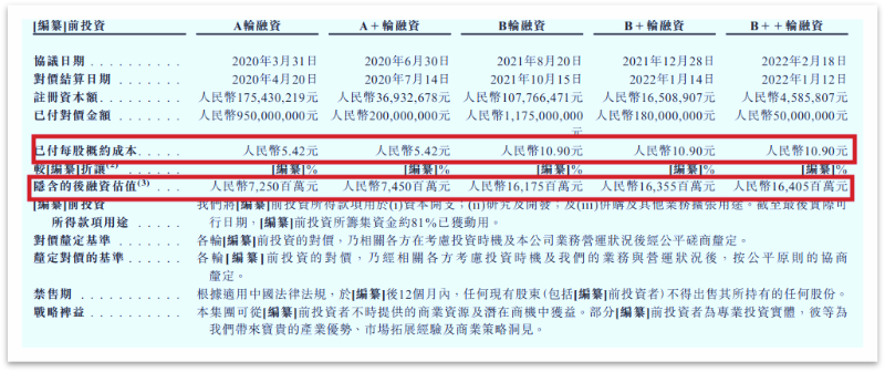 卡奥斯从2020年起正式开启外部融资之路:2020年3月A轮融资对价5.42元/股,投后估值为72.50亿元;时隔一年半,投后估值翻倍至161.75亿元,融资对价达10.90元/股;至2022年2月B++轮融资,投后估值达164.05亿元。