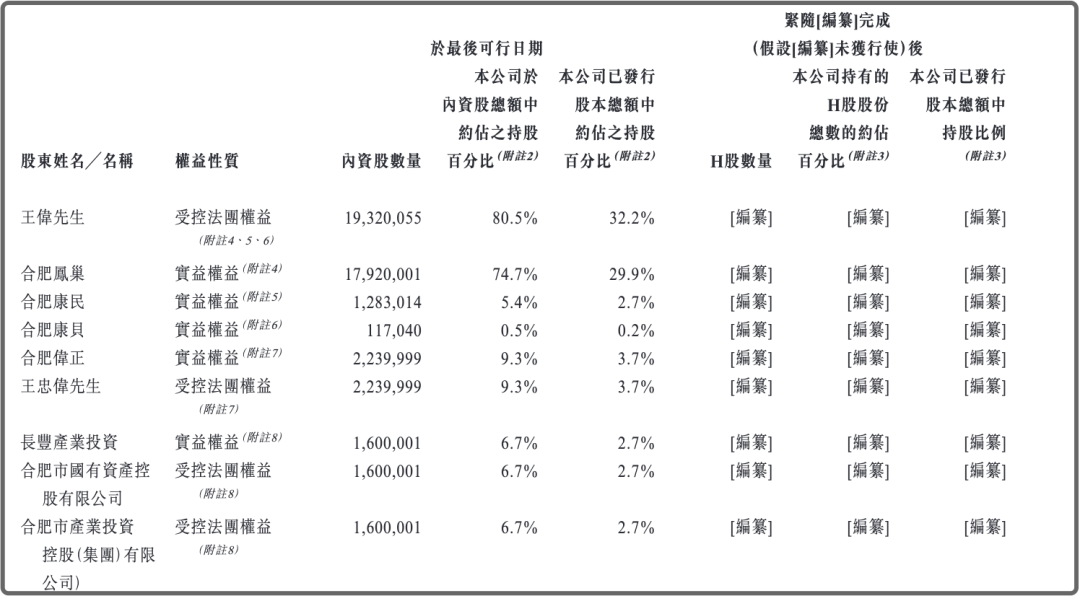 据招股书,康诺生物由控股公司合肥凤巢直接拥有约74.7%股份,而合肥凤巢则由公司执行董事、董事长兼行政总裁王伟直接拥有75%。此外,由于王伟还担任合肥康民及合肥康贝各自的普通合伙人(该两间公司分别作为雇员激励平台设立),合肥康民及合肥康贝的投票权据此实际归属于王伟。因此王伟、合肥凤巢、合肥康民及合肥康贝构成一组控股股东集团。