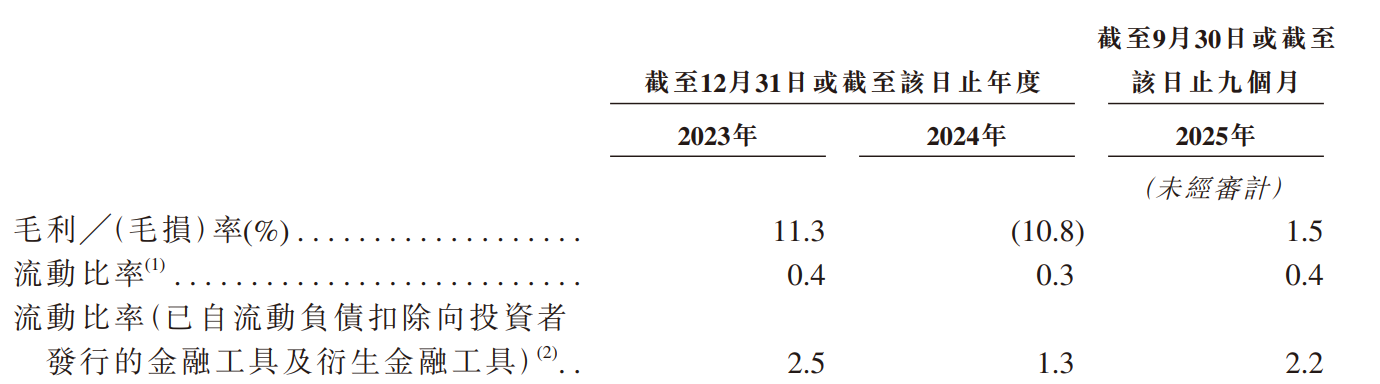 于2023年度、2024年度、2025年截至9月30日止九个月,公司的毛利率分别为11.3%、-10.8%及1.5%。