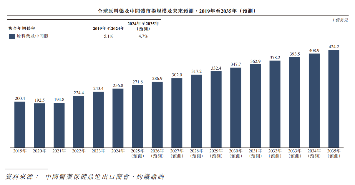 在合成生物学进步的推动下,全球原料药及中间体市场规模预计将从2024年的2,568亿美元增长至2030年的3,477亿美元,并进一步于2035年达到4,242亿美元,2024年至2035年的复合年增长率为4.7%。