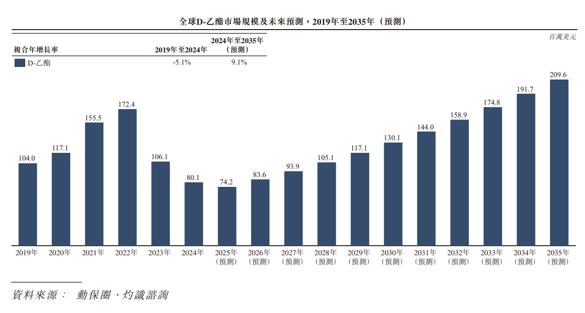 就原料药及中间体而言,根据灼识咨询,自2025年实现氟苯尼考的规模化生产后,以截至2025年9月30日止九个月的收入计,公司于同期的市场份额为24.5%,位居全球氟苯尼考行业第二位;以截至2025年9月30日止九个月的收入(包括内部及外部销售)计算,公司的D-乙酯市场份额44.5%,位居全球D-乙酯行业排名第一。
