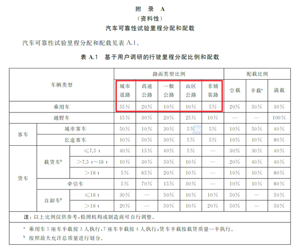 可靠性试验有个初衷是,尽可能贴近用户实际使用的场景。比如在可靠性国标里,给出了一个基于用户调研的行驶里程分配比例。