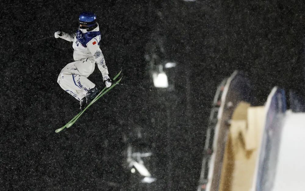 ▲谷爱凌在第一轮比赛中。