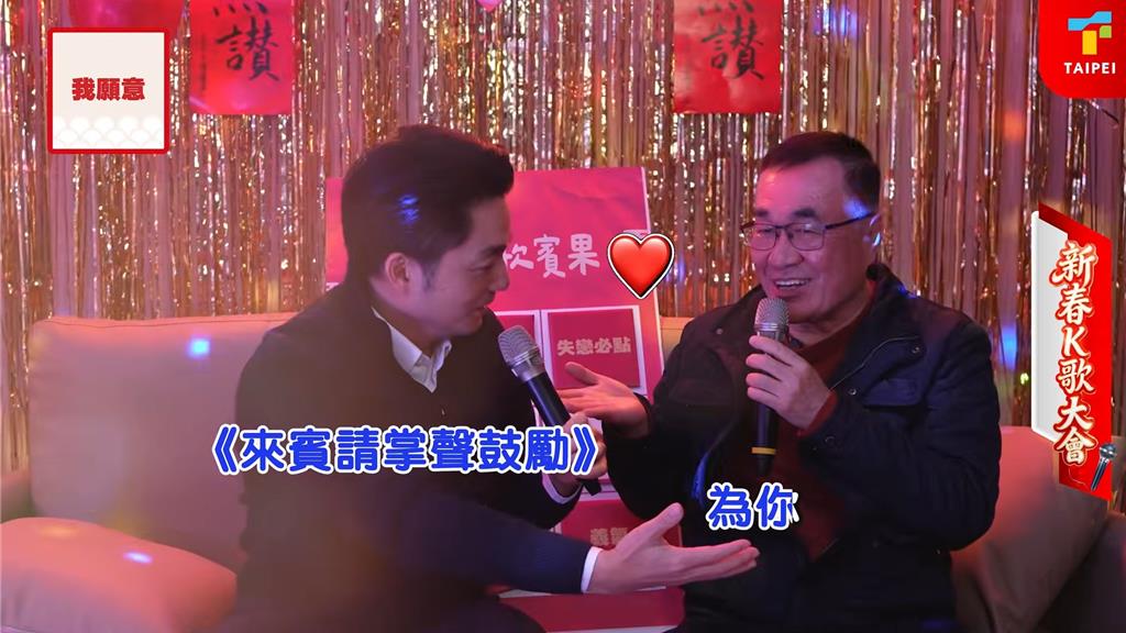 ▲蒋万安跟李四川唱到王菲《我愿意》的关键字“为你”时深情对望。台北市政府提供