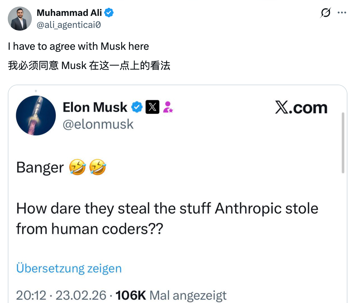 根据Anthropic在报告中的详细表述,上述三家企业被指通过搭建约24000个账户,与Anthropic旗下的Claude模型完成了超1600万次的交互操作。Anthropic认为,这种行为是以“工业级规模”提取其模型的核心能力,属于违反其服务条款的行为。不过,这一指控公布后,很快就在行业内部引发了不小的争议,xAI创始人埃隆·马斯克更是在社交平台上公开对Anthropic的立场提出了质疑。