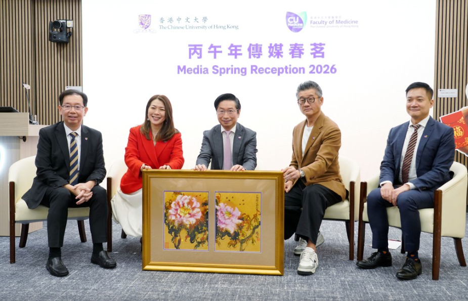 ▲左起︰中大医学院副院长(学生事务)吴兆文、副院长(研究)黄秀娟、院长赵伟仁、副院长(科研转化及创业)莫树锦及副院长(教育)黄仰山今日出席传媒春茗。叶伟豪摄