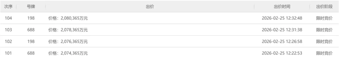▲马场1期地块出价记录