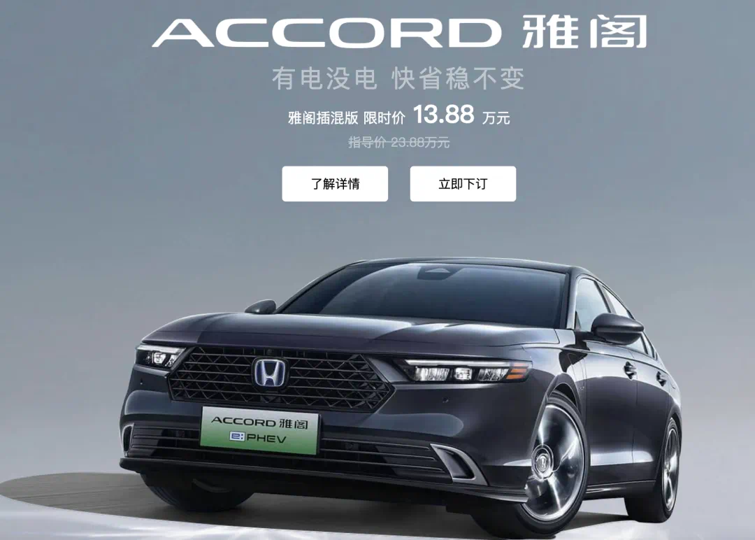 广汽本田近日宣布,为庆祝雅阁50周年,老客户复购雅阁e:PHEV车型,仅需13.88万元,较官方指导价直降10万元,创下上市后最高降价纪录,限量1000辆。
