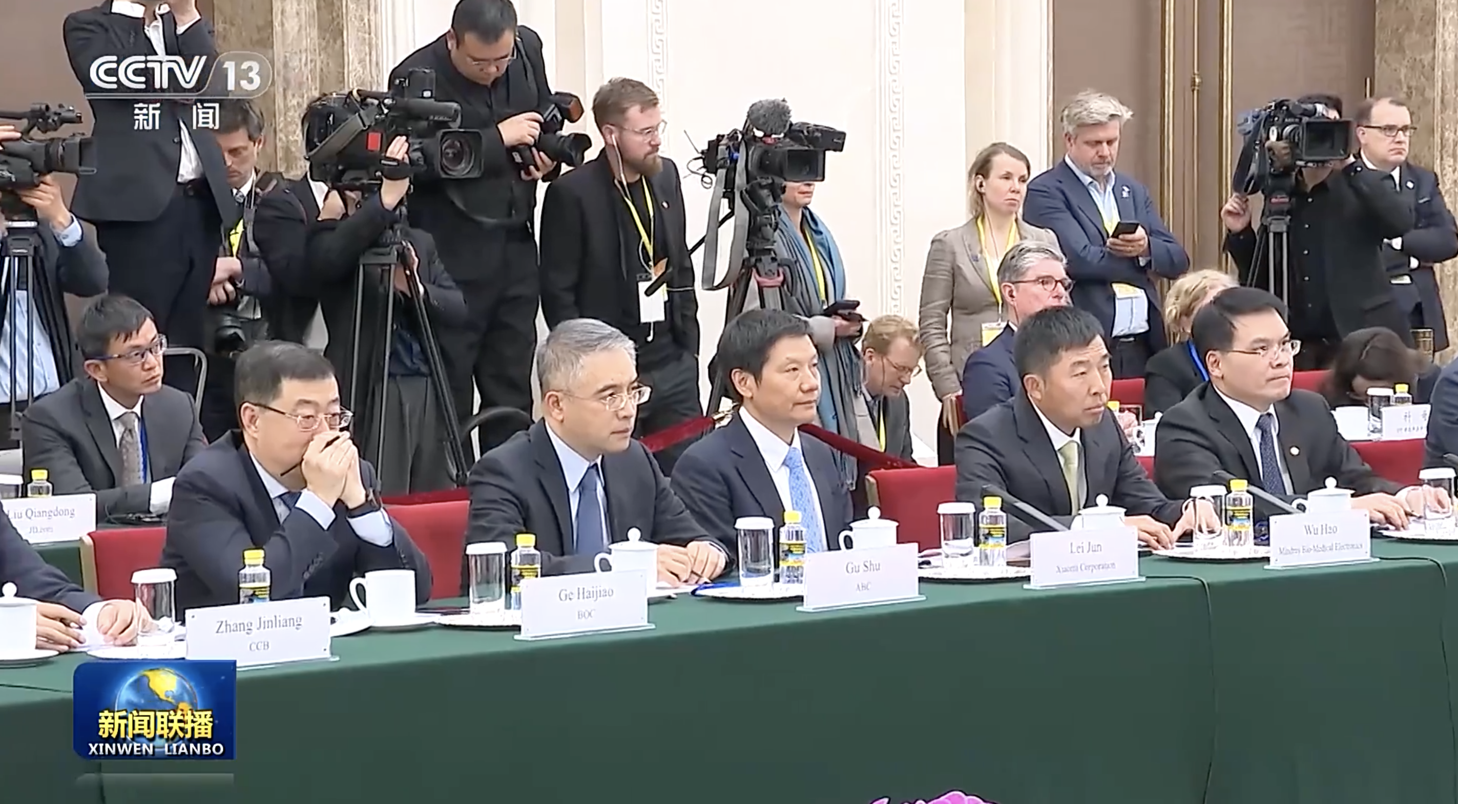 据《新闻联播》画面显示,从此次参会中方企业代表来看,阵容同样涵盖多个关键领域,包括农业银行董事长谷澍,中国银行董事长葛海蛟,小米集团创始人、董事长兼CEO雷军,中航集团董事长刘铁祥,吉利汽车董事长李书福,正泰集团董事长南存辉等。