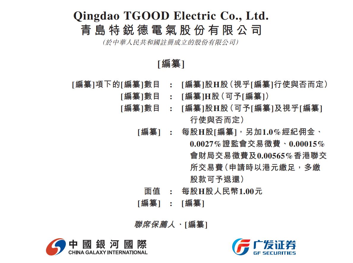 据港交所2月26日披露,青岛特锐德电气股份有限公司(300001.SZ)向港交所主板递交上市申请书,中国银河国际、广发证券为其联席保荐人。据招股书,特锐德是全球最大的高压预制舱变电站制造商与中国最大的电动汽车充电设备制造商及充电网运营商。