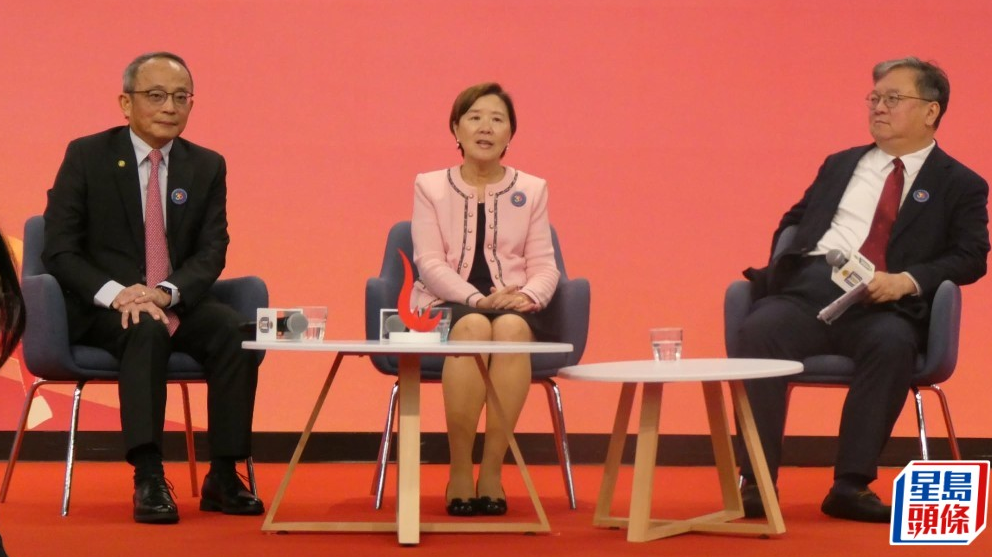 ▲科大首席副校长郭毅可(右一)称在中东公干的教职员正在回程;校长叶玉如(中)及副校长(研究及发展)郑光廷(左一)均相信科研合作不会受国际局势影响。