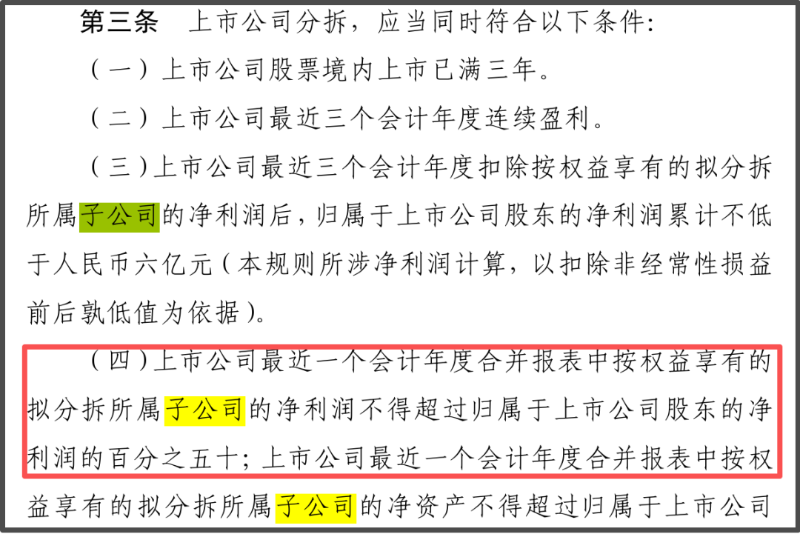 ▲图源:中国证监会官网 上市公司分拆规则(试行)