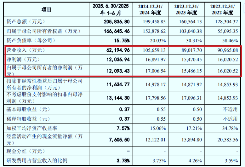 财务数据显示,初源新材近年来业绩经营状况持续向好。2025年1—6月,初源新材营业收入6.22亿元、归母净利润1.21亿元,分别同比增长28.08%和76.17%。