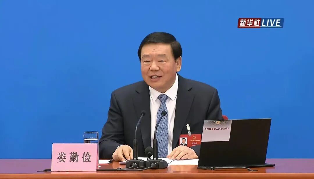 2024年3月4日,十四届全国人大二次会议新闻发布会召开。娄勤俭首次以大会发言人的身份亮相,在90多分钟的时间里回答了中外记者的13个提问。