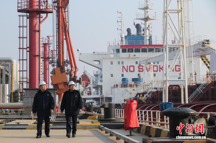 ▲济南海关所属东营海关关员对进口燃料油“分类周期抽检”模式进口船舶开展常规巡查,实地查看船舶卫生和货物装卸情况。吴玮 摄