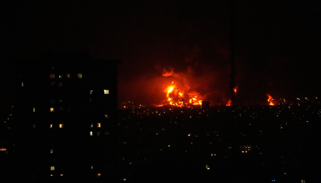 ▲以色列打击伊朗油库,德黑兰冒橘红色火光。 美联社