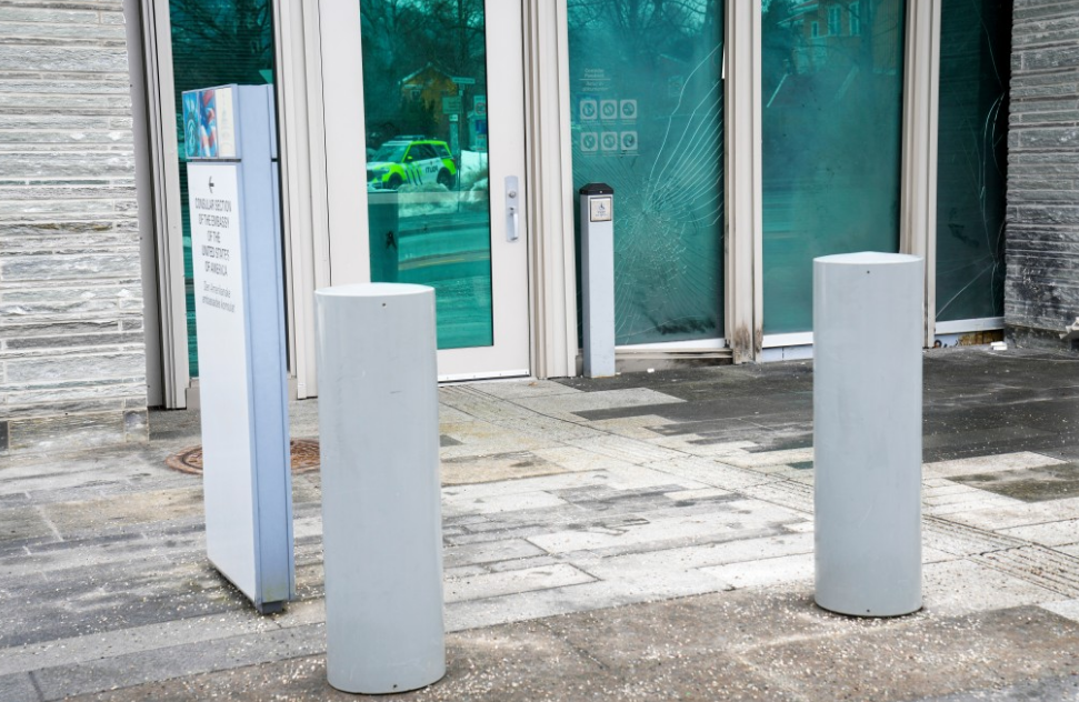 一名美国官员表示,燃烧装置藏在背包内,并在大使馆领事事务办公室入口外引爆。