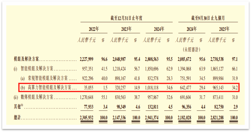 目前,美格智能的高算力智能模组业务逐渐“挑起大梁”,收入从2022年的0.35亿元跃升至2025年前九个月的9.65亿元,占收入比重从1.5%攀升至34.2%,成为第一大业务。