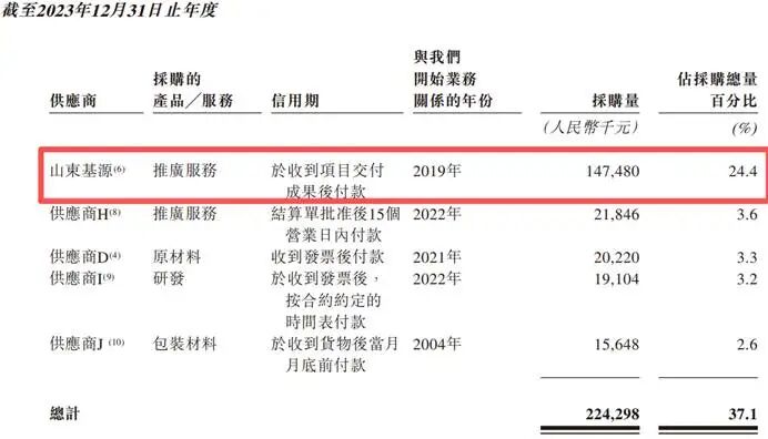 于2023年及2024年,山东基源甚至成为了汉方制药的五大供货商之一。