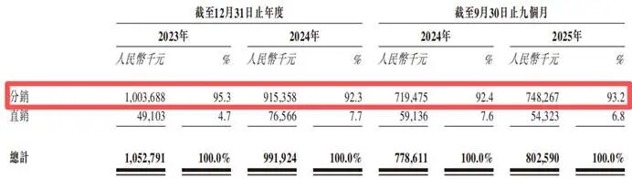 2023年、2024年及2025年前三季度,汉方制药的销售及营销开支,分别为5.1亿元、4.8亿元及4.2亿元,占同期总收入的比例,分别达到48.7%、48.6%及52.3%。