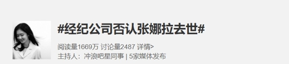 张娜拉方面回应称去年8月已离开LAELBnc,并向死者致哀,“虽然有很多被误传的地方,但无论如何,对方都是一起工作的后辈。不管怎么说,首先应该让家人办好葬礼。对于任何事情,我都要很小心和抱歉。关于故人的死亡,她表示哀悼,并对有关故人的推测性报道表示惋惜。”张娜拉前公司有员工离世,一度传出“有艺人离世”,甚至是张娜拉被传死讯,“艺人过世”登上热搜。