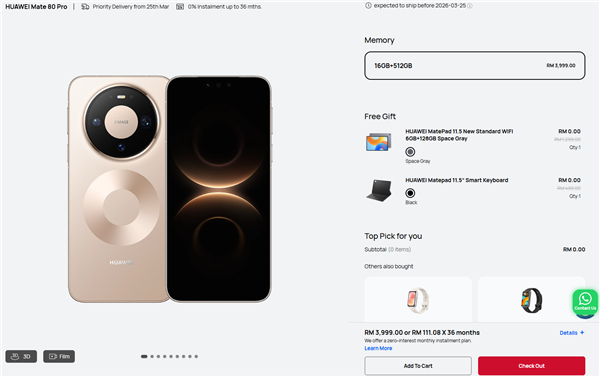 值得一提的是,官方还为预订用户准备了价值2115RM(约合3699元人民币)的购机礼品,包括华为MatePad 11.5平板和MatePad 11.5英寸智能键盘,诚意十足。